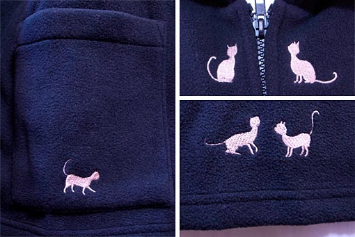 ポケットや袖口、後ろの裾にも猫の刺繍が入った可愛いパーカーです。